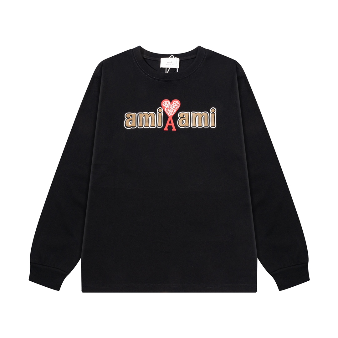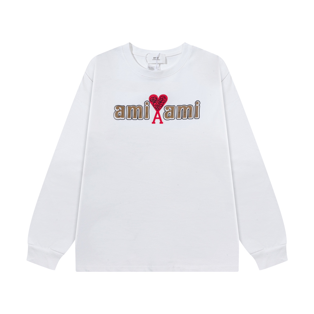 AMI PARIS ハート ロゴ コットン 刺繍 長袖 Tシャツ★人気★
