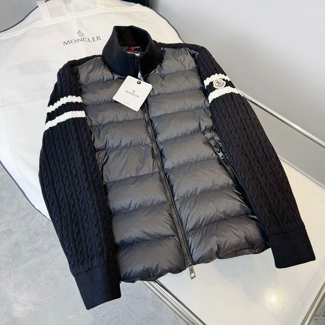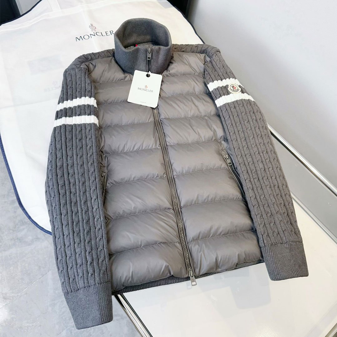 【Moncler】モンクレール 2025 スタンドカラーニットウールパッチワークダウンジャケット